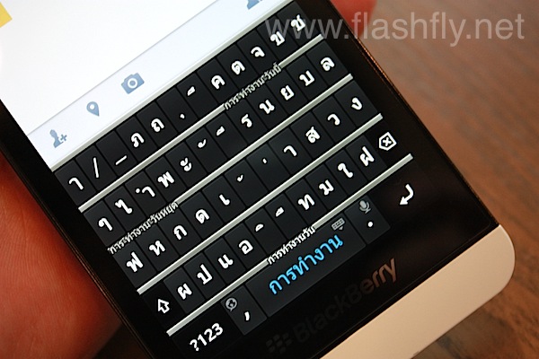 นอกจากนี้ยังรองรับภาษาไทยเต็มรูปแบบทั้งอ่านและพิมพ์ สำหรับแป้นพิมพ์บน BlackBerry Z10 นั้นมีขนาดใหญ่พิมพ์ง่าย พร้อมระบบเดาคำที่แสนฉลาดไม่เหมือนใคร ช่วยการพิมพ์ภาษาอังกฤษหรือภาษาไทยทำได้รวดเร็วๆและง่ายดายมากสมชื่อ BlackBerry จริงๆ หรือจะพูดให้พิมพ์ก็ได้
