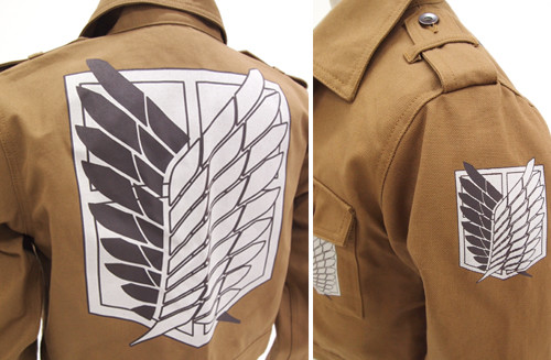 ยังฮิตติดลมบนกันอย่างต่อเนื่องกับการ์ตูนและอนิเมะ “Attack on Titan” ซึ่งในตอนนี้ยอดขายการ์ตูนนั้นใกล้จะถึง 20 ล้านเล่มเข้าไปแล้ว ด้วยกระแสความนิยมนี้เองทำให้ทาง Cospa จับเอาแจ็คเก็ตทหารในเรื่องทั้งแบบสั้นและแบบธรรมดา มาวางจำหน่ายอีกครั้งในช่วงเดือนกรกฎาคมนี้ ซึ่งทำออกมาได้ใกล้เคียงมากเลยทีเดียวแถมยังสวยงามน่าสวมใส่อีกด้วย