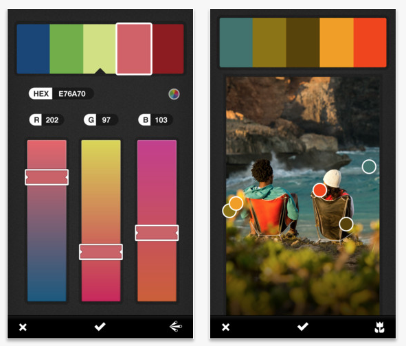 Adobe ส่งแอพคู่ใจนักออกแบบ Adobe Kuler เพิ่มความสะดวกในการเก็บชุดสีสวยๆจากสถานที่ต่างๆรอบตัวผ่านแอพบน iPhone เพียงส่องกล้องออกไปเท่านั้นตัวแอพก็จะแสดงค่าสีแบบ RGB ตามจุดต่างๆในกล้องจำนวน 5 สีด้วยกัน ถ้าไม่ชอบใจในบางสีก็สามารถปรับแต่งได้เองอีกด้วย เรียกได้ว่าสามารถสร้างแรงบันดาลใจได้ทุกที่กันเลยทีเดียว สำหรับธีมสีที่เราเก็บไว้สามารถแชร์ให้เพื่อนผ่านทาง Twitter หรือ Email ได้ และยังสามารถซิงค์ชุดธีมสีไปใช้งานบน Illustrator ได้ด้วยผ่าน ID ที่ https://kuler.adobe.com/