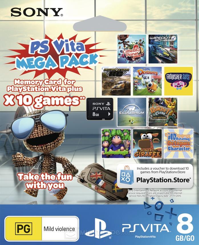 ทาง Sony เริ่มหาโปรโมชั่นแปลกๆแนวใหม่มาให้ผู้เล่นได้เสียตังกันอีกแล้วกับชุด PS Vita Mega Pack เมื่อผู้เล่นซื้อ Memory Card 8GB จะได้รับเกมของเครื่อง PS Vita แถมไปให้ด้วยอีก 10 เกมด้วยกัน โดยมีรายชื่อเกมต่างๆดังนี้