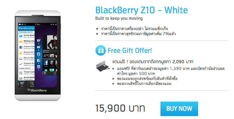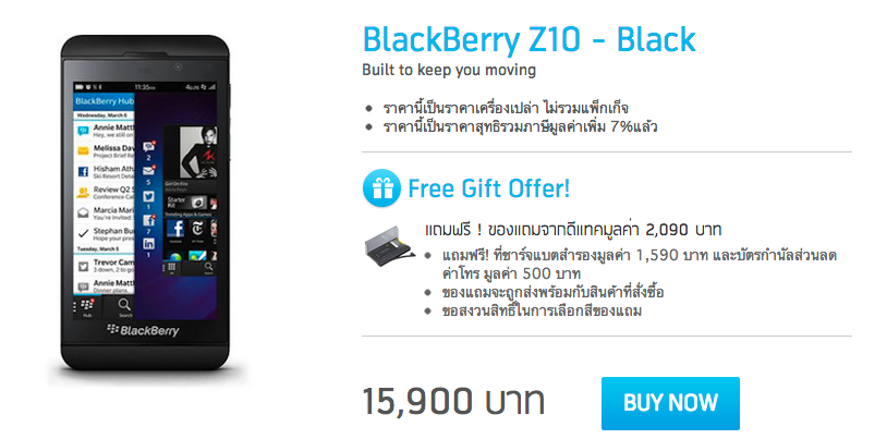 เรียกได้ว่าข่าวนี้สร้างความฮือฮาแก่สาวก BB ได้พอสมควรหลังจากที่ BlackBerry Z10 ได้วางจำหน่ายในประเทศไทยไปได้เพียงไม่นานในราคา 20,900 บาท ที่หลายคนบ่นว่าราคาเปิดตัวค่อนข้างสูงไปสักหน่อย ล่าสุดทางค่าย dtac ได้จัดโปรโมชั่นล่าสุดหั่นราคา BlackBerry Z10 ลงเหลือเพียง 15,900 บาททั้งสีขาวและดำ เมื่อสั่งซื้อ Online