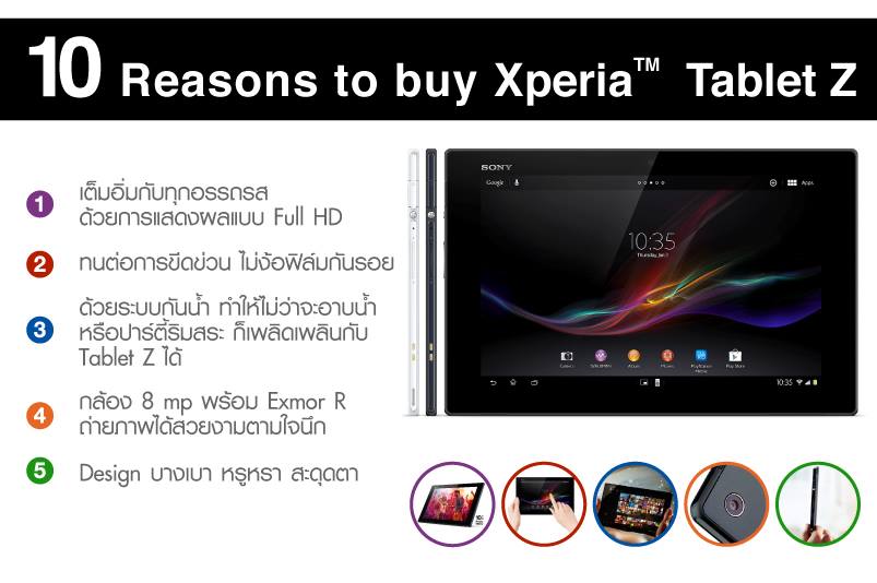 Sony เผย 10 เหตุผลทำไมต้องซื้อ Xperia Tablet Z หลังวางจำหน่ายอย่างเป็นทางการในประเทศไทยแล้วในราคา 22,990 บาท รองรับ 4G LTE ของ Truemove H