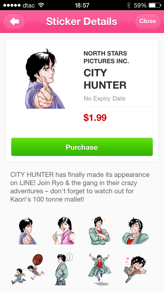 LINE วางจำหน่ายสติ๊กเกอร์ใหม่ที่ถูกใจสาวกชาวไทยอย่างแน่นอนกับสติ๊กเกอร์การ์ตูนชื่อดัง CITY HUNTER ที่มากันครบทุกตัวละครดังอย่าง ซาเอบะ เรียว ,คาโอริ หรือ ซาเอโกะ อีกแบบคือเจ้าหมี Rilakkuma Summer ที่น่ารักน่าหยิกเหลือเกิน แต่สำหรับ LINE ประเทศญี่ปุ่นมีวางจำหน่ายเพิ่มอีก 2 แบบคือการ์ตูนดังในปี 80 กับ KINNIKUMAN: Friendship และ MAGICAL ANGEL CREAMY MAMI ปิดท้ายด้วย Trancas & Barrancas จาก LINE ประเทศสเปน