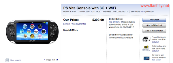 ซึ่งทางร้าน Bestbuy ประเทศแคนาดา เปิดให้สั่งจอง PS Vita ทั้งรุ่น WiFi และ 3G + WiFi ผ่านทางเว็บไซต์แล้ว ในราคา 249.99$ ประมาณ 7,500 บาท สำหรับรุ่น Wifi และรุ่น 3G + WiFi ในราคา 299.99$ ประมาณ 9,000 บาท สามารถรับสินค้าได้วันที่ 3 มีนาคม 2012 เรียกได้ว่าใครรอคอยอยากเป็นเจ้าของ PS Vita และไม่มีบ้านอยู่ที่ญี่ปุ่นก็สามารถสั่งจองกับทาง Bestbuy ได้ที่ link ด้านล่าง