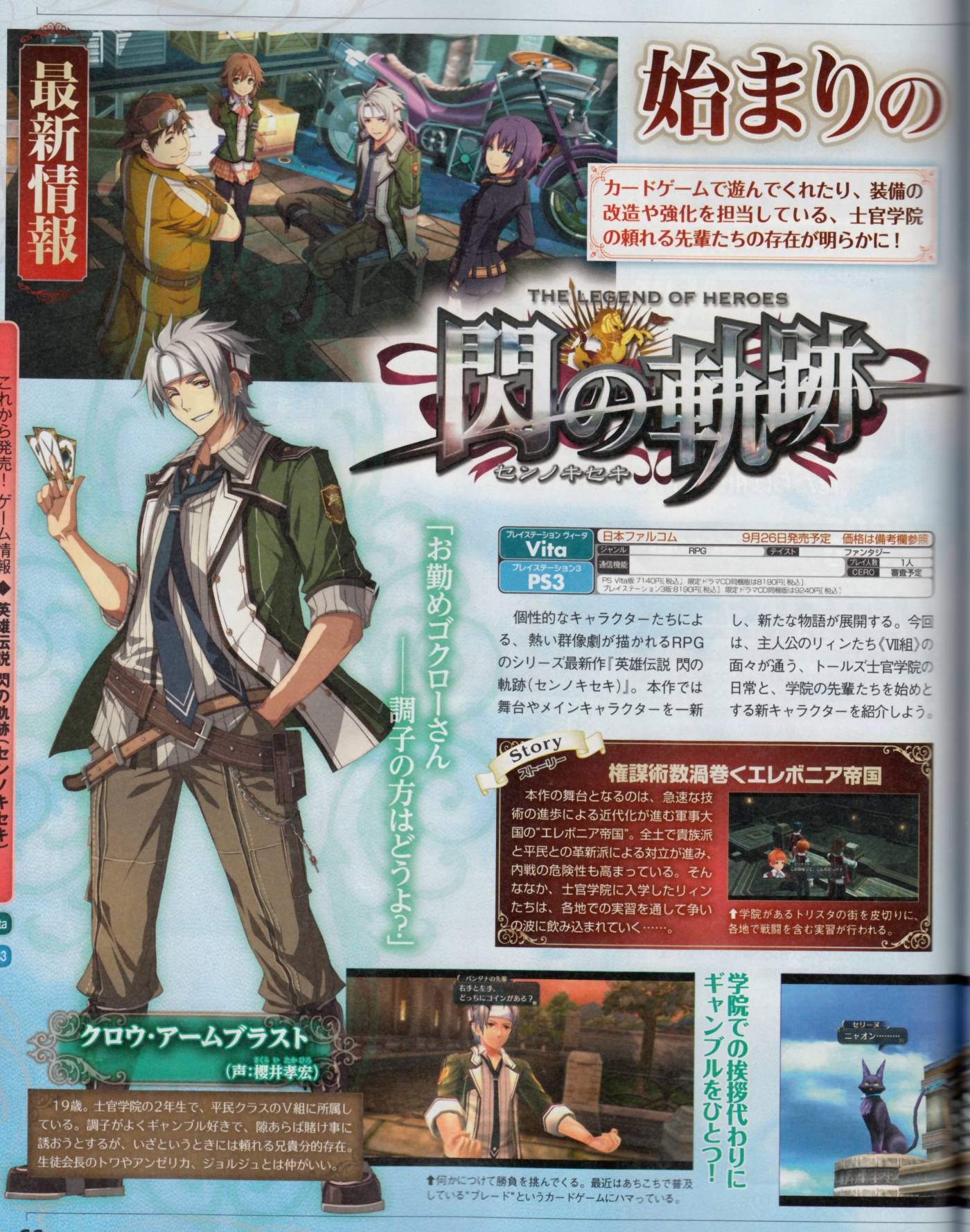 The Legend of Heroes: Sen no Kiseki มีกำหนดวางจำหน่ายบนเครื่อง PlayStation 3 และ PS Vita ในวันที่ 26 กันยายนนี้ที่ญี่ปุ่น