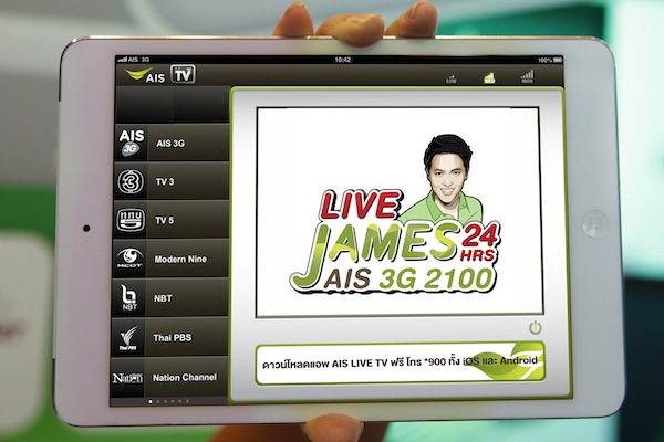 AIS 3G 2100 ชวนลูกค้าเตรียมตัวชมถ่ายทอดสด ตามติดตัวจริงของ “เจมส์ จิรายุ” พรีเซนเตอร์สุดฮ็อต ได้ตลอด 24 ชั่วโมง ในวันศุกร์ที่ 26 กรกฎาคม ศกนี้ ตั้งแต่เวลา 7.30 น. เป็นต้นไป ผ่านแอพ AIS LIVE TV บนเครือข่าย AIS 3G 2100 ในกว่า 56 จังหวัดทั่วประเทศ โดยสามารถดาวน์โหลดแอพฟรีได้ง่ายๆ เพียง โทร *900 รองรับทั้งบน iOS และ Android ได้ตั้งแต่วันนี้เป็นต้นไป