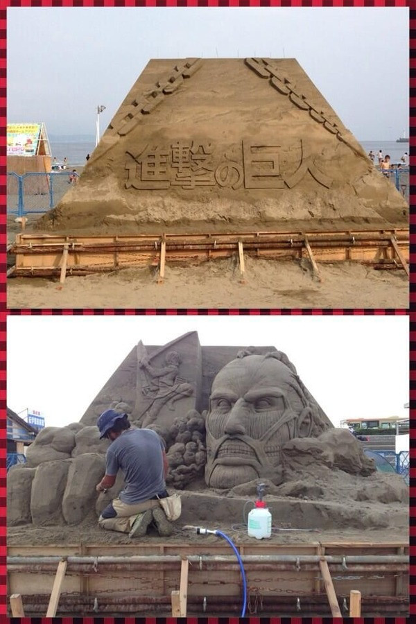 งานปั้นกองทราย Attack on Titan สุดอลังกาลงานสร้าง ผลงานศิลปินของญี่ปุ่นนามว่า Toshihiko Hosaka โดยเค้าได้ใช้ทรายทั้งหมด 80 ตันด้วยกันเพื่อสร้างผลงานประติมากรรมชิ้นนี้ขึ้นมา ที่ชายหาด Enoshima Higashihima เมือง Fujisawa จังหวัด Kanagawa มารับชมคลิปงานปั้นกองทรายสุดอลังกาลนี้กัน