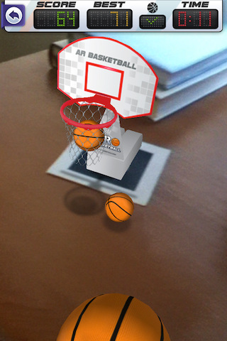 เกมแนว AR บน iPhone นั้นมีน้อยมากแทบจะนับเกมได้และ ARBasketball ก็เป็นหนึ่งใน AR เกมที่จะมาสร้างความสนุกแปลกใหม่ ให้คุณได้พบประบการณ์ที่ไม่เคยพบเจอมาก่อนในเกมบาสเกตบอลบน iPhone วิธีการเล่นก็แสนง่ายเพียง Print แผ่น AR Code ออกมา แล้วนำมาวางที่จุดไหนก็ได้ไม่ว่าจะเป็น บนโต๊ะ บนเก้าอี้ โซฟา พื้นไม้ ทางเดิน จากนั้นก็เปิดเกมแล้วใช้กล้องส่องไปที่แผ่น AR Code ก็จะมีแป้นบาส 3 มิติโผล่ขึ้นมาให้เห็น จากนั้นก็ได้เวลายัดห่วงกันแล้ว ตัวเกมมีขนาด 8.9 MB คอบาสรีบกันหน่อยเวลามีจำกัด!!