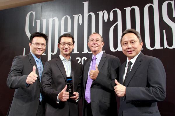นายพรรัตน์ เจนจรัสสกุล ผู้ช่วยกรรมการผู้อำนวยการ ส่วนงานการสื่อสารการตลาด บมจ.แอดวานซ์ อินโฟร์ เซอร์วิส หรือเอไอเอส (ที่ 2 จากซ้าย) รับรางวัล Superbrands 2013 จาก มร.ไมค์ อิงลิช ประธานบริหารและผู้อำนวยการซุปเปอร์แบรนด์ ประเทศอังกฤษ ( ที่ 2 จากขวา) โดยเอไอเอสเป็นบริษัทผู้ให้บริการโทรศัพท์เคลื่อนที่รายเดียวที่ได้รับรางวัลนี้ ซึ่งได้รับการยอมรับจากผู้บริโภคให้เป็นสุดยอดแบรนด์คุณภาพ ที่ผู้บริโภคเชื่อมั่น และไว้วางใจ โดยมีนายปรีชา แก่นพรหม ผู้อำนวยการซุปเปอร์แบรนด์ประเทศไทย (ซ้ายสุด) และนายชาญ ศรีวิกรม์ ประธาน-บริษัท เกษร แลนด์ แอสเซท แมนเนจเมนท์ จำกัด (ขวาสุด) ร่วมเป็นสักขีพยาน ณ ศูนย์การค้าเซ็นทรัลเวิลด์