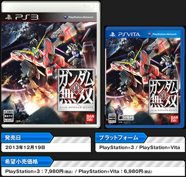 Shin Gundam Musou มีกำหนดวางจำหน่ายบนเครื่อง PlayStation 3 และ PS Vita ในวันที่ 19 ธันวาคมนี้ที่ญี่ปุ่น