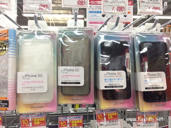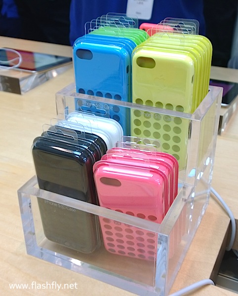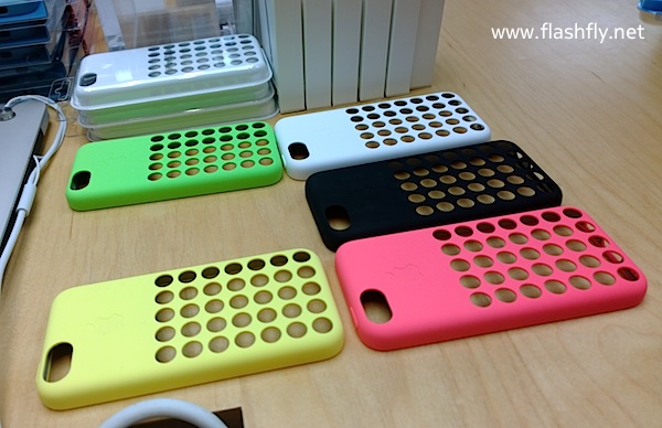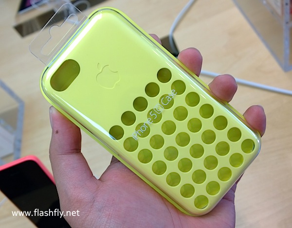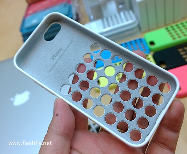 ส่วนเคสของ iPhone 5c นั้นด้านหลังมีลักษณะเป็นรูกลมๆ เปิดให้เห็นสีสันอันสดใสของ iPhone 5c มีให้เลือกทั้งหมด 6 สี ได้แก่ สีขาว สีแดง สีเหลือง สีฟ้า สีเขียว และสีดำ หรือประมาณ 900 บาท