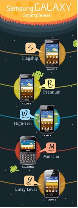 Samsung ยกขบวนเปิดตัว Smartphone รุ่นใหม่ในตระกูล GALAXY พร้อมกันถึง 4 รุ่น ซึ่งมาพร้อมกับระบบปฎิบัติการ Android 2.3 ซึ่งทั้งหมดจะถูกนำไปแสดงในงาน IFA trade show ที่กรุง Berlin ประเทศเยอรมันนีในเดือนหน้า และแต่ละรุ่นต่างมาพร้อมกับความสามารถและคอนเซ็ปที่หลากหลาย รวมถึงชื่อที่มีความหมายที่แตกต่างกันนั่นก็คือ GALAXY W, GALAXY M Pro, GALAXY Y และ GALAXY Y Pro ดังนี้