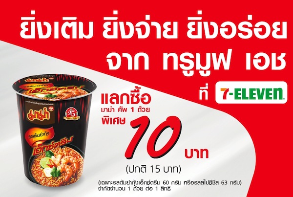 กลับมาอีกครั้งกับแคมเปญสุดคุ้ม “ยิ่งเติม ยิ่งจ่าย ยิ่งอร่อย” มอบสิทธิพิเศษแลกซื้อมาม่า คัพ รสต้มยำกุ้ง เอ็กซ์ตรีม ขนาด 60 กรัม หรือ รสสไปซี่ชีส ขนาด 63 กรัม ในราคาเพียง 10 บาท (จากปกติ 15 บาท) รับสิทธิ์ได้ง่ายๆ เพียง