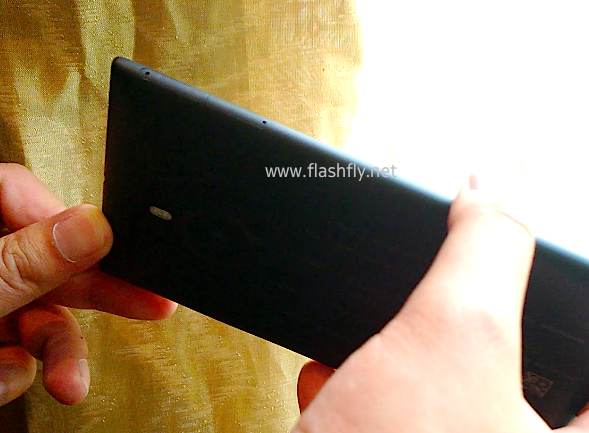 มาดูรอบๆตัวเครื่องกันบ่้าง ด้านบนมีเพียงช่องเสียงหูฟังขนาด 3.5 มม. ด้านล่างก็มีเพียงช่อง Micro USB สำหรับเชื่อมต่อคอมพิวเตอร์และชาร์แบตเตอร์รี่ ด้านข้างทางซ้ายจะพบช่องใส่ Sim Card แบบ Nano Sim ซึ่งเป็น Lumia รุ่นแรกที่ใช้ และติดกันคือช่องใส่ Micro SD ทีรองรับถึง 64GB ใส่หนังใส่เพลงได้สะใจไปเลย