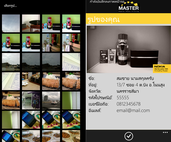 แอพเฉพาะผู้ใช้ Nokia Lumia 1020 เท่านั้น โดยคุณสามารถสั่งภาพขนาดโปสเตอร์ 20×35 นิ้ว พร้อมบริการส่งตรงถึงบ้านฟรีหนึ่งรูป เพียงแค่เลือกภาพโปรดของคุณ ระบุสถานที่จัดส่ง แล้วภาพถ่ายของคุณก็จะถูกอัดและจัดส่งถึงสถานที่ที่ระบุโดย Master Print ร้านบริการถ่ายภาพที่ใหญ่ที่สุดในประเทศไทย