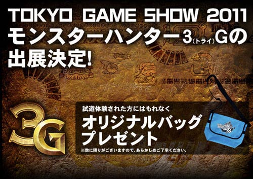 หากได้ร่วมทดลองเล่น Monster Hunter 3G ที่บูธงาน Tokyo Game Show อาจมีลุ้นได้รางวัลกระเป๋าลายพิเศษ