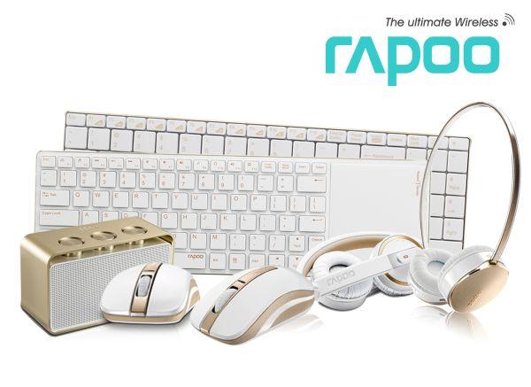 Rapoo (ราพูพ์) ผู้เชี่ยวชาญด้านอุปกรณ์ต่อพ่วงไร้สายที่มีคุณภาพและทันสมัยเปิดตัวชุดผลิตภัณฑ์ต่อพ่วงคอมพิวเตอร์สีทองแชมเปญโกลด์ซีรี่เป็นครั้งแรกเพื่อเป็นทางเลือกสุดคูลให้กับสาวกไอที ด้วยการเลือกสรรผลิตภัณฑ์รูปลักษณ์ใหม่ สีทองประกายวาววับที่จะเติมเต็มไลฟ์สไตล์ด้านไอทีให้ดูโดดเด่น และทันสมัย