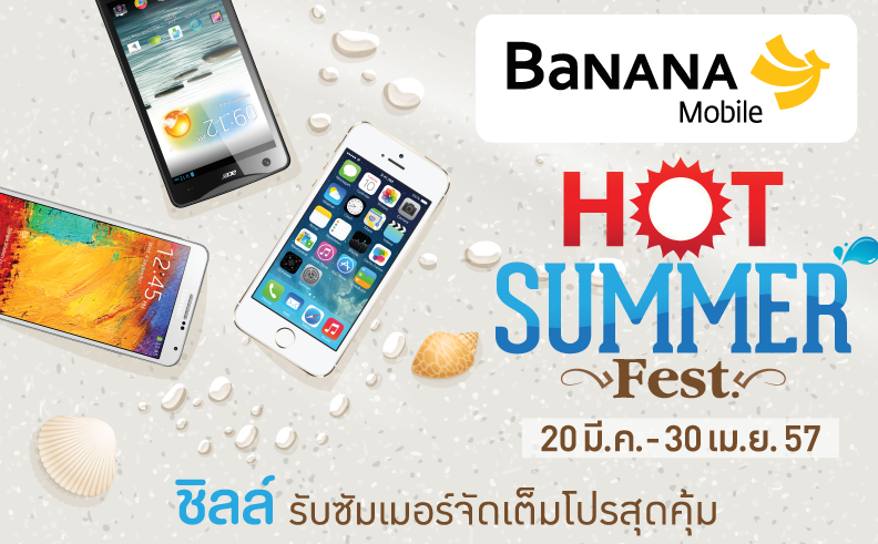 โปรโมชั่น Hot Summer Fest ชิลล์ รับซัมเมอร์จัดเต็มโปรโมชั่นสุดคุ้ม ที่ร้านบานาน่า โมบาย ทุกสาขา วันนี้-30 เมษายน 2557