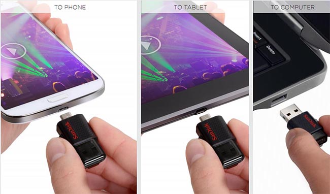 SanDisk Ultra Dual USB Drive ได้นำเสนอวิธีการอันสะดวกสบายเพื่อถ่ายโอนข้อมูล สำหรับสมาร์ทโฟนที่ใช้ระบบปฏิบัติการแอนดรอย์ หรือแท็บเล็ตที่มีพอร์ท micro-USB และ คอมพิวเตอร์ที่มีช่อง USB สำหรับการเชื่อมต่อ ในขณะที่วิธีการอื่นๆ เพื่อถ่ายโอนข้อมูล ยังต้องใช้สายเชื่อมต่อระหว่างอุปกรณ์มือถือและคอมพิวเตอร์ ซึ่ง SanDisk Ultra Dual USB Drive จะใช้แอพพลิเคชั่นหรือการตั้งค่าแบบไร้สาย แล้วเชื่อมต่อเข้ากับอุปกรณ์มือถือที่รองรับการใช้งานกับ USB on-the-go (OTG)1 เพื่อให้สามารถเข้าถึงความจุในการเก็บข้อมูลขนาด 64GB2 ทั้งยังมีคุณสมบัติของวัสดุส่วนที่เป็นฝาครอบที่ช่วยให้ถอด USB ออกได้ง่าย ซึ่งจะช่วยป้องกันความเสียหายในส่วนที่ทำงานในการเชื่อมต่อข้อมูล
