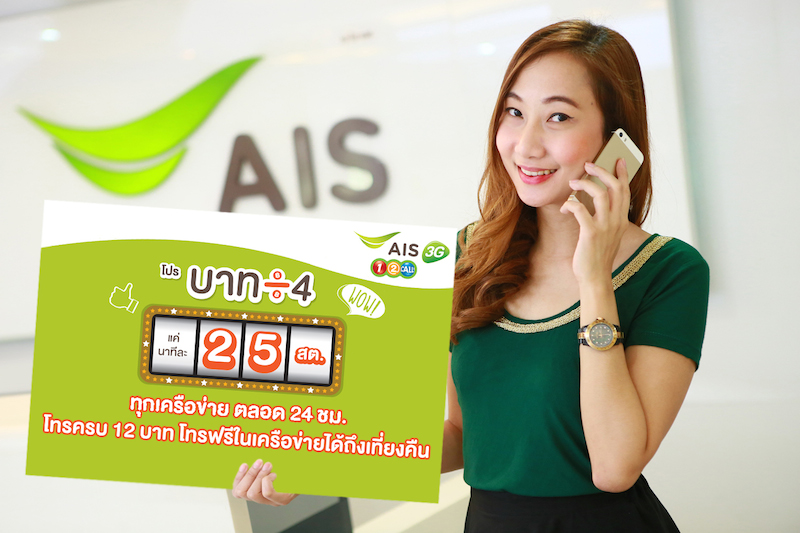ให้สามารถโทรหาทุกเครือข่ายอย่างสบายใจ ในราคาประหยัด ด้วยอัตราค่าโทรถูกที่สุด เพียงนาทีละ 25 สต. (นาทีแรก 99 สต.) ตลอด 24 ชั่วโมง และคุ้มค่ามากยิ่งขึ้น เมื่อโทรครบ 12 บาท ในวันเดียวกัน รับสิทธิ์โทรฟรี! ในเครือข่ายเอไอเอสได้ถึงเที่ยงคืน เริ่มตั้งแต่วันนี้ – 31 พ.ค. 57 สอบถามรายละเอียดเพิ่มเติมที่เอไอเอส คอลล์ เซ็นเตอร์ 1175