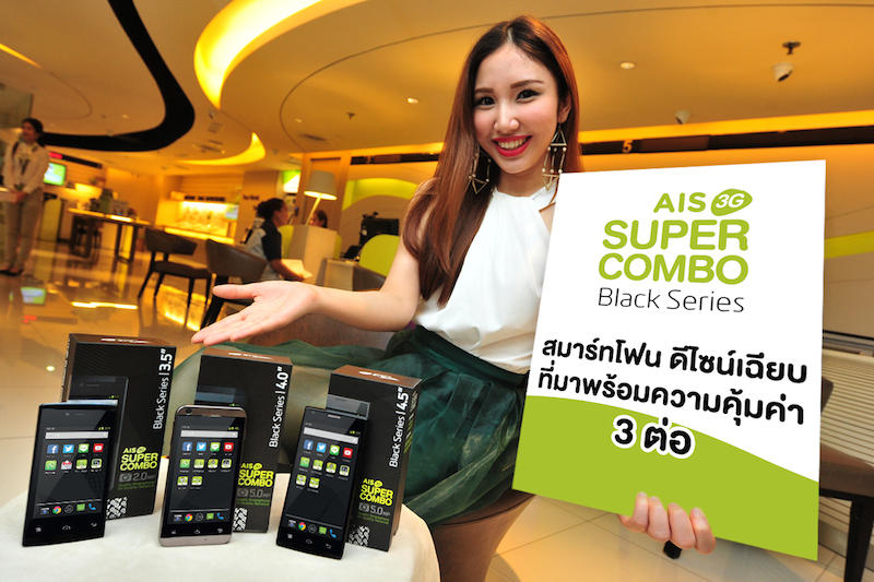เอไอเอส 3G 2100 เดินหน้าสานต่อแคมเปญสุดฮิต “AIS 3G Super Combo” เปิดตัวสมาร์ทโฟน 3G คุณภาพมาตรฐานแอนดรอยด์ ดีไซน์เฉียบ ที่มีกล้องหน้า พร้อมใช้งาน VDO Call ทุกรุ่น ในชื่อชุด “แบล็ค ซีรี่ส์” (Black Series) จัดเต็ม 3 ความคุ้มค่าไว้ในเซ็ทเดียวกัน เพื่อให้ทุกคนเป็นเจ้าของมือถือ 3G คุณภาพได้อย่างมั่นใจ ทั้ง