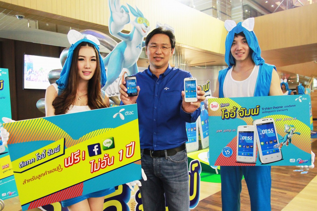 บริษัท โทเทิ่ล แอ็คเซ็ส คอมมูนิเคชั่น จำกัด (มหาชน) หรือ ดีแทค รุกตลาดผู้เริ่มใช้สมาร์ทโฟนต่อเนื่องเปิดตัว “โจอี้ จัมพ์” ดีแทคไตรเน็ตโฟนรุ่นใหม่ล่าสุดกับหน้าจอสัมผัสขนาด 4.0 และ 3.5 สมาร์ทโฟนที่สอดคล้องกับแนวคิด “สมาร์ทกว่ากับดีแทคสมาร์ทโฟน” สอดรับวิสัยทัศน์ “Internet for All” อย่างต่อเนื่อง ด้วยสเปกสูงกว่าราคาเบาๆ ที่ทุกคนเป็นเป็นเจ้าของได้บน TriNet 3 โครงข่ายอัจฉริยะ หลังจากดีแทคไตรเน็ตโฟนมีสมาร์ทโฟนออกสู่ตลาดมาแล้วถึง 2 เจนเนอเรชั่นด้วยกัน สำหรับดีแทคไตรเน็ตโฟนเจนเนอเรชั่นใหม่นี้ยิ่งทำให้กลยุทธ์ “Internet for All” ชัดเจนยิ่งขึ้นเพื่อให้คนไทยได้สามารถเข้าถึง Internet ได้ง่ายยิ่งขึ้น