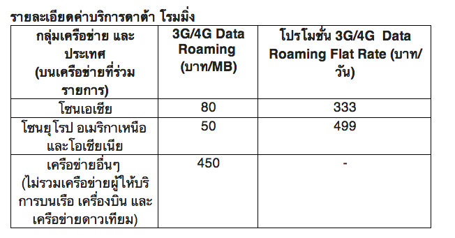 ลูกค้าที่สนใจบริการ 4G LTE ดาต้า โรมมิ่ง สามารถดูรายละเอียดเครือข่ายที่ร่วมรายการและอัตราค่าบริการได้ที่ http://www.truemove-h.com/roaming หรือสอบถามรายละเอียดเพิ่มเติมได้ที่โทร. 1331 และร้านทรูช้อป ทั่วประเทศ