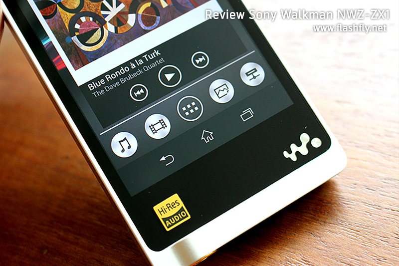 สำหรับหน้า Home Screen ของ Sony Walkman NWZ-ZX1 นั้นจะแตกต่างสมาร์ทโฟน Xperia ของ Sony โดยจะเน้นการฟังเพลงเป็นหลักสามารถกดฟังเพลงจากหน้าจอแรกได้เลย ส่วนเมนูด้านล่างก็จะประกอบไปด้วย