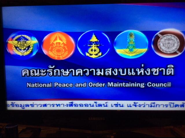 เมื่อวันที่ 22 พฤษภาคม 2557 เวลาประมาณ 22:10 น. คณะรักษาความสงบแห่งชาติ (National Peace and Order Maintaining Council) ได้ออกประกาศผ่านตัววิ่งด้านล่างในโทรทัศน์เกี่ยวกับข่าวลือที่จะมีการตัดสัญญาณอินเตอร์เนท หรือ LINE ดังต่อไปนี้