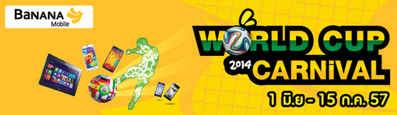 อย่าพลาด!! โปรโมชั่น World Cup Carnival 2014 ช้อปสนุก ลดทะลุตาข่าย ต้อนรับบอลโลก กับสินค้าไอทีสุดอินเทรนด์ สมาร์ทโฟน แท็บเล็ต โมเดลดัง สินค้าขายดี พร้อมของแถมมากมาย และโปรโมชั่นโดนใจ ราคาคุ้มค่ามากกว่าใคร ที่ร้านบานาน่าไอทีและร้านบานาน่าโมบายทุกสาขา 1 มิถุนายน – 15 กรกฎาคม 2557