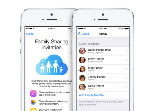 Family Sharing สามารถแชร์คอนเทนต์ต่างๆให้กับคนภายในครอบครัวได้สูงสุด 6 คนไม่ว่าจะเป็น แอพพลิเคชั่น เพลง ภาพยนตร์ หนังสือ ebook ที่เคยดาวน์โหลดมาสามารถแชร์ให้สมาชิกในครอครัวสามารถดาวน์โหลดได้ รวมถึงยังสามารถสร้างอัลบั้มภาพถ่ายในครอบครัว , สามารถจัดการบันทึกนัดหมายของคนในครอบครัวผ่านทาง Calendar , ค้นหาพิกัดสถานที่ของคนในครอบครัวหรือค้นหาดีไวซ์ของคนในครอบครัวก็สามารถทำได้ และยังมีฟีเจอร์ที่เด็กๆในครอบครัวจะสามารถขออนุญาติดาวน์โหลดแอพพลิเคชั่นที่ต้องการผ่านการชำระเงินด้วยบัตรเครดิตของผู้ปกครอง โดยจะมีข้อความไปขึ้นแจ้งที่ผู้ปกครองก่อนจะมีการดาวน์โหลดดังกล่าวอีกด้วย
