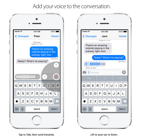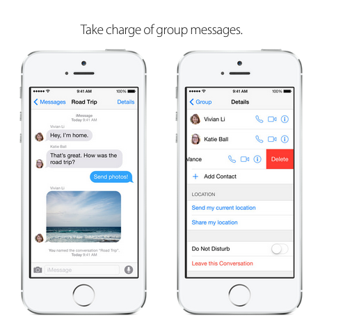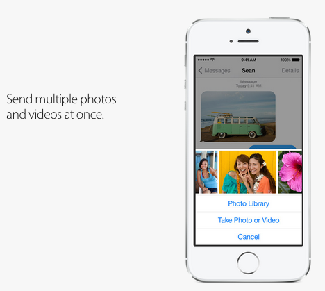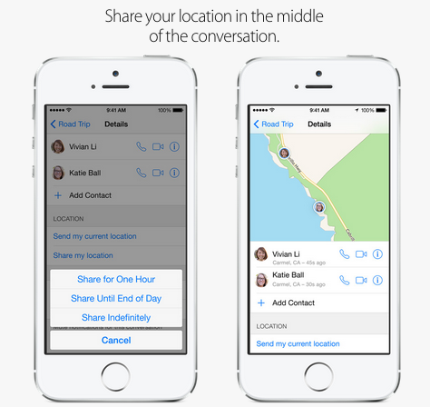 เรื่องของการใช้งาน Message บน iOS 8 นั้นก็ได้มีการเพิ่มฟังก์ชันในการใช้งานต่างๆเข้าไป ไม่ว่าจะเป็นความสามารถในการส่งคลิปเสียงแนบไปกับข้อความได้ , การส่งคลิปวีดีโอที่สามารถกดถ่ายคลิปได้อย่างรวดเร็ว , การส่งข้อความแบบกลุ่มหรือ Group Message , การแชร์สถานที่ และการส่งภาพหรือคลิปวีดีโอพร้อมกันหลายๆไฟล์ได้