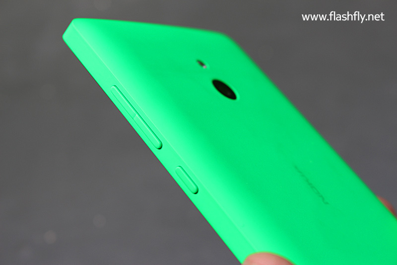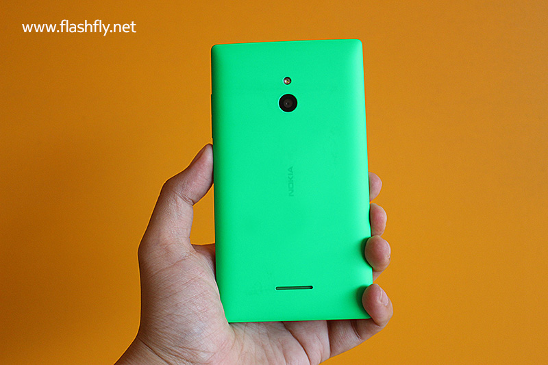 วัสดุฝาหลังใช้เป็นโพลิคาร์บอเนทเช่นเดียวกับ Nokia X รุ่นแรกสามารถถอดเปลี่ยนได้ง่าย ด้านบนมีช่องสำหรับเสียบหูฟังขนาด 3.5 มม. ด้านล่างมีช่องเสียบสาย Micro USB สำหรับชาร์จไฟและเชื่อมต่อกับคอมพิวเตอร์ ที่ทางซ้ายเรียบเนียนไม่มีปุ่มใดๆ ส่วนทางด้านขวามีปุ่มเพิ่มลดเสียง และปุ่มปิดเปิดเครื่อง ซึ่ง Nokia XL ไม่มีปุ่มชัตเตอร์ถ่ายภาพแบบ Lumia