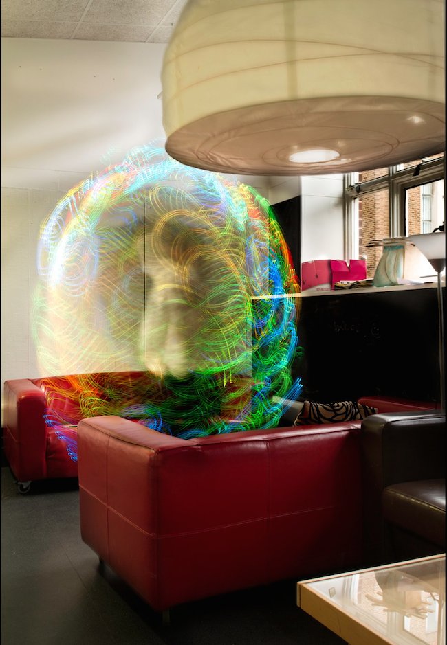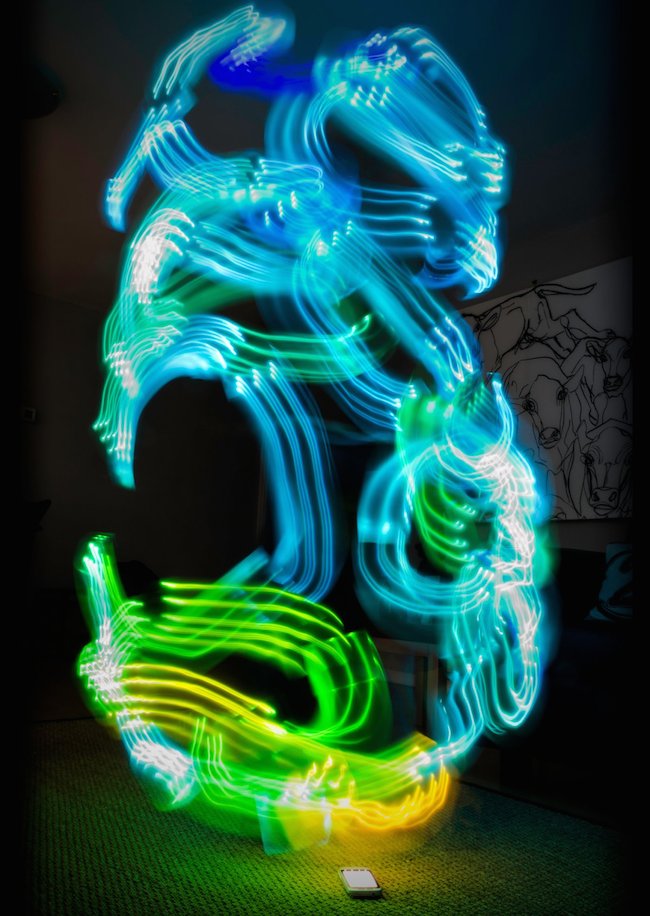 จากนั้นเขาจึงทำการถ่ายภาพโดยใช้เทคนิคการถ่ายภาพแบบ Long-Exposure เพื่อทำให้เห็นภาพของความเข้มของสัญญาณ Wi-Fi ดังกล่าวออกมาเป็นสีสันอย่างชัดเจน