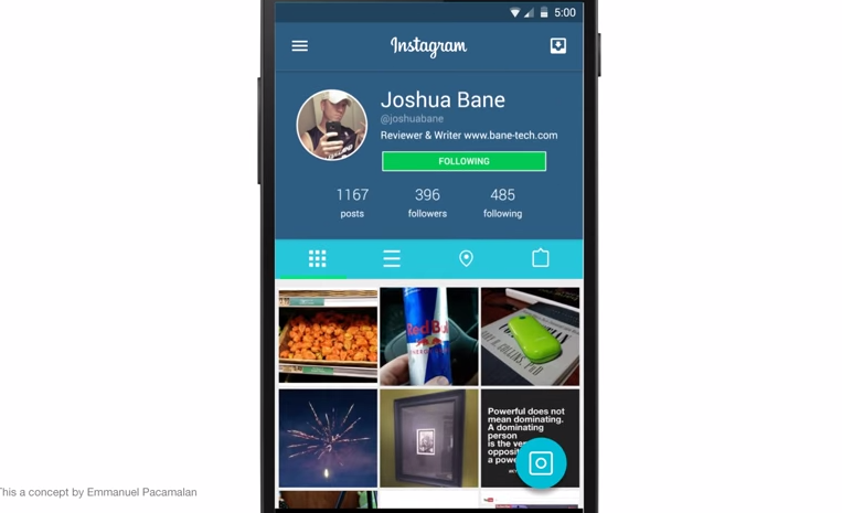 หลังจากที่ Google ได้เปิดตัว Android L เวอร์ชั่นใหม่ล่าสุดที่ปรับโฉมใหม่ด้วย Material Design ไปในงาน Google IO ที่ผ่านมา ล่าสุดก็มีคอนเซปของแอพแชร์ภาพถ่ายชื่อดัง Instagram หากเปลี่ยนดีไซน์เป็นแบบ Material Design บ้างจะเป็นอย่างไร ผลงงานนี้เป็นฝีมือการออกแบบของนาย Emmanuel Pacamalan ที่ได้ทำคลิปขึ้น Youtube ดูแล้วสวยงามน่าใช้งานเป็นอย่างยิ่ง