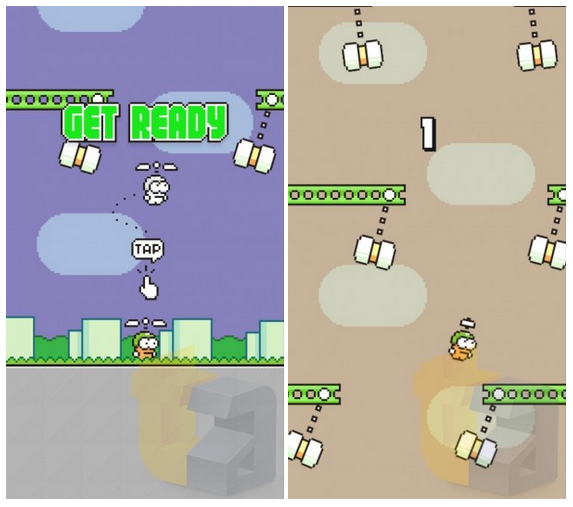 มาแล้ว Swing Copters เกมใหม่ล่าสุดของ Dong Nguyen นักพัฒนาเกม Flappy Bird อันโด่งดังตัวเกมยังคงสไตล์กราฟฟิคแบบคลาสิกของเครื่อง Supre Famicom แต่เปลี่ยนจากเกมแนวนอนเป็นเกมแนวตั้งบินขึ้นด้านบนเพื่อหลบสิ่งกีดขวางแทน ความโหดยังคงเช่นเดียวกับ Flappy Bird