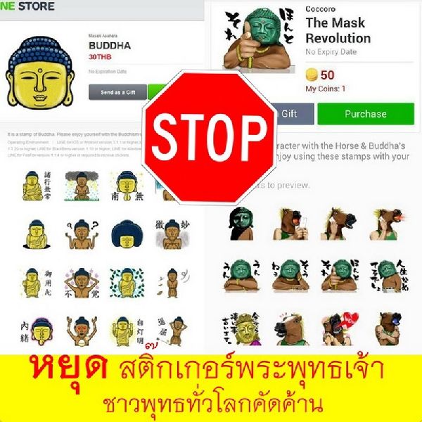LINE ประเทศไทยสั่งหยุดจำหน่ายสติกเกอร์ล้อเลียนพระพุทธเจ้าแล้ว