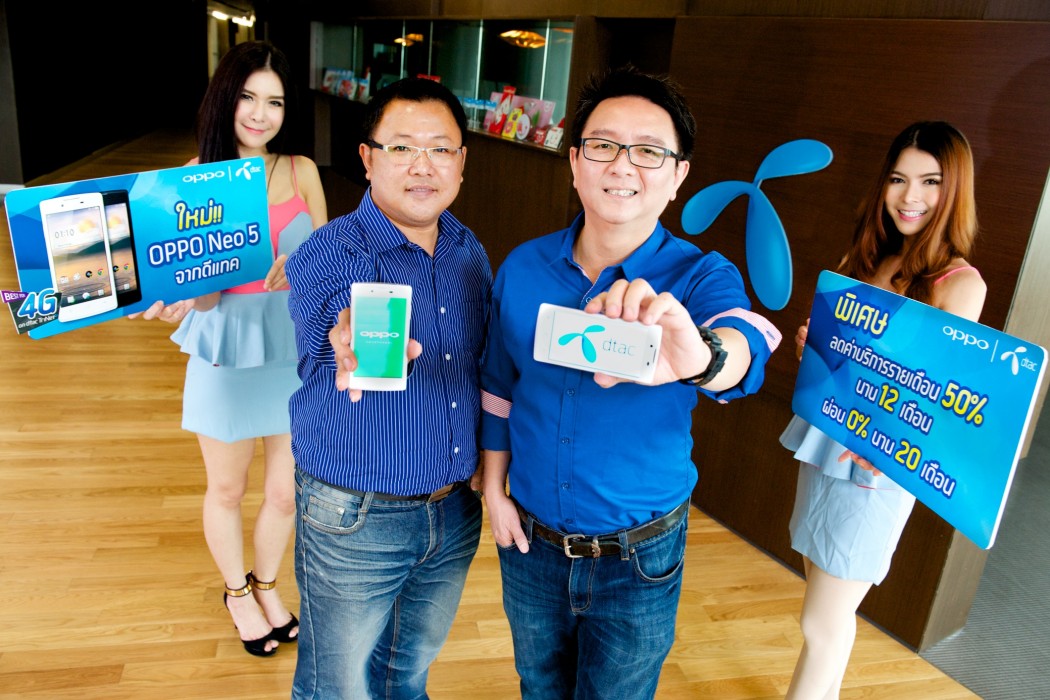 นายปกรณ์ มโนรมย์ภัทรสาร ผู้อำนวยการฝ่ายการตลาดธุรกิจโพสต์เพด บริษัท โทเทิ่ล แอ็คเซ็ส คอมมูนิเคชั่น จำกัด (มหาชน) หรือ ดีแทค และนายชูเกียรติ อรุณอุดมชัย ผู้อำนวยการฝ่ายขาย บริษัท ไทย ออปโป้ จำกัด เปิดตัว OPPO Neo 5 สู่ตลาดสมาร์ทโฟนเมืองไทยอย่างเป็นทางการ โดยดีแทคได้สิทธิ์เป็นผู้ให้บริการรายเดียวในประเทศไทยที่จัดจำหน่าย OPPO Neo 5