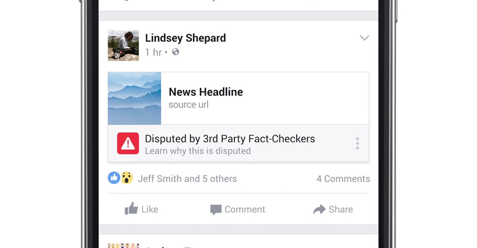 Facebook ประกาศจัดการข่าวปลอมและข่าวลวง แต่ให้สิทธิผู้ใช้งานหรือเจ้าของบัญชี Facebook เป็นผู้ตัดสินเอง โดยการกดรายงานหากพบโพสต์ที่ไม่มีความน่าเชื่อถือ โดยการคลิกที่มุมบนขวาของโพสต์ ซึ่งจะช่วยให้ Facebook ตรวจสอบข่าวปลอมได้ง่ายขึ้น