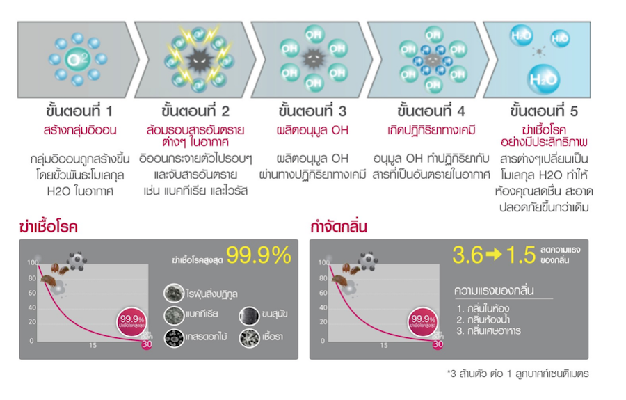สะอาดปราศจากเชื้อโรคสูงสุด 99.9% ด้วยไอออนจำนวนกว่า 3 ล้าน* ช่วยกำจัดแบคทีเรีย และกลิ่นที่ไม่พึงประสงค์ได้หมดสิ้นอีกด้วย