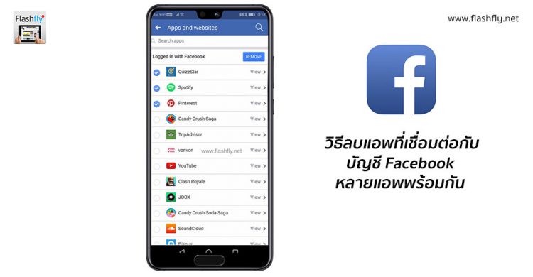 ในหน้านี้ก็จะบอกแอพและเว็บต่างๆที่เราล็อกอินใช้งานด้วยบัญชี Facebook ของเรา หากต้องการลบออกสามารถจิ้มเลือกหลายๆแอพพร้อมกันแล้วกด REMOVE ได้ทันที เป็นอันเรียบร้อย