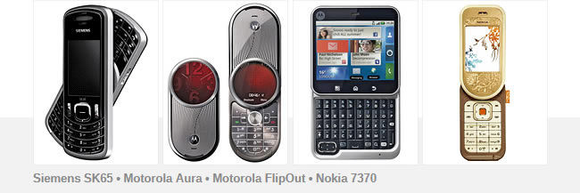 ดีไซน์แบบฝาพับ Motorola RAZR V3, Motorola BACKFLIP, LG Wine Smart และ Nokia N93i หลายคนคงยังจำ Motorola RAZR V3 ได้เป็นอย่างดี โทรศัพท์มือถือฝาพับดีไซน์บาง ได้รับความนิยมอย่างมาก เทียบเท่ากับ iPhone ในปัจจุบันเลยทีเดียว ขณะที่ Nokia N93i สร้างความแตกต่างจากดีไซน์ฝาพับ ด้วยการออกแบบส่วนของจอแสดงผลให้บิดหมุนได้