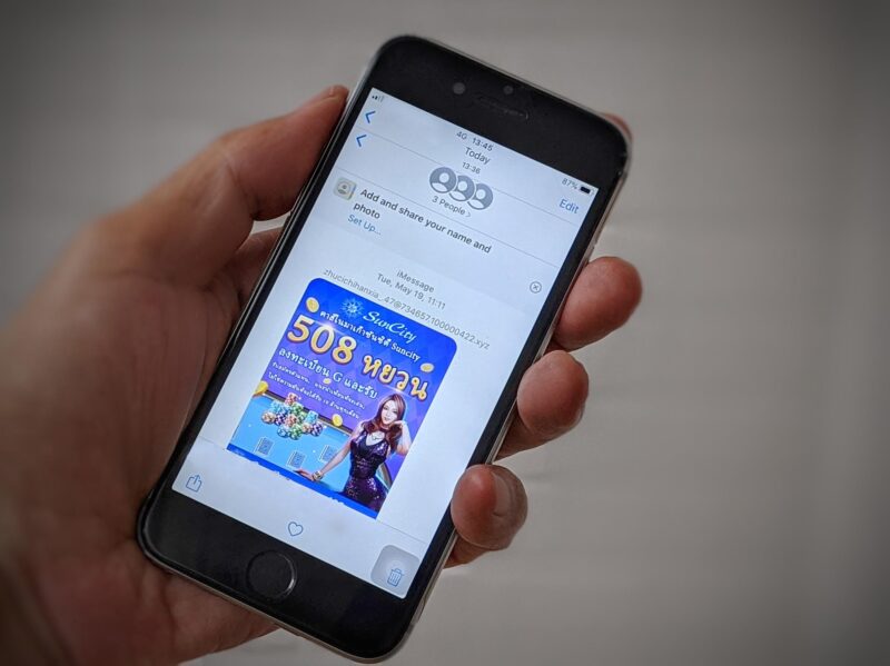 จากกรณีผู้ใช้งานมือถือ iPhone จำนวนมากจากทุกค่ายมือถือ ได้รับข้อความลักษณะสแปมผ่านทาง iMessage จากผู้ไม่หวังดีเพื่อหลอกลวงให้คลิกเพื่อเล่นการพนัน หรือใช้บริการที่ไม่เหมาะสม โดยถ้าผู้ใช้งานไม่ได้สังเกตหรือหลงเชื่อเมื่อคลิกข้อความเข้าไปอาจจะทำให้เกิดปัญหาเรื่องความปลอดภัย และถูกหลอกลวงให้ใช้บริการอันอาจจะทำให้เสียทรัพย์สินได้ ขณะนี้ สำนักงาน กสทช. แอปเปิล (Apple) ผู้ผลิต iPhone และผู้พัฒนาระบบปฏิบัติการ iOS พร้อมผู้ให้บริการมือถือกำลังร่วมมือหาแนวทางป้องกันเพื่อให้ผู้ใช้ iPhone ได้รับความปลอดภัยจากการใช้งาน ไม่ถูกล่อลวงจากสแปมหรือข้อความขยะผ่านทาง iMessage