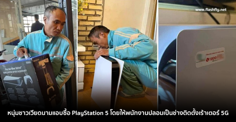 หนุ่มเวียดนามเมื่อได้เห็นคลิปวีดีโอดังกล่าวก็ไม่รอช้า กดสั่งซื้อ PlayStation 5 แล้วขอให้พนักงานติดตั้ง PlayStation 5 ปลอมตัวเป็นช่างติดตั้งเร้าเตอร์ 5G แทน