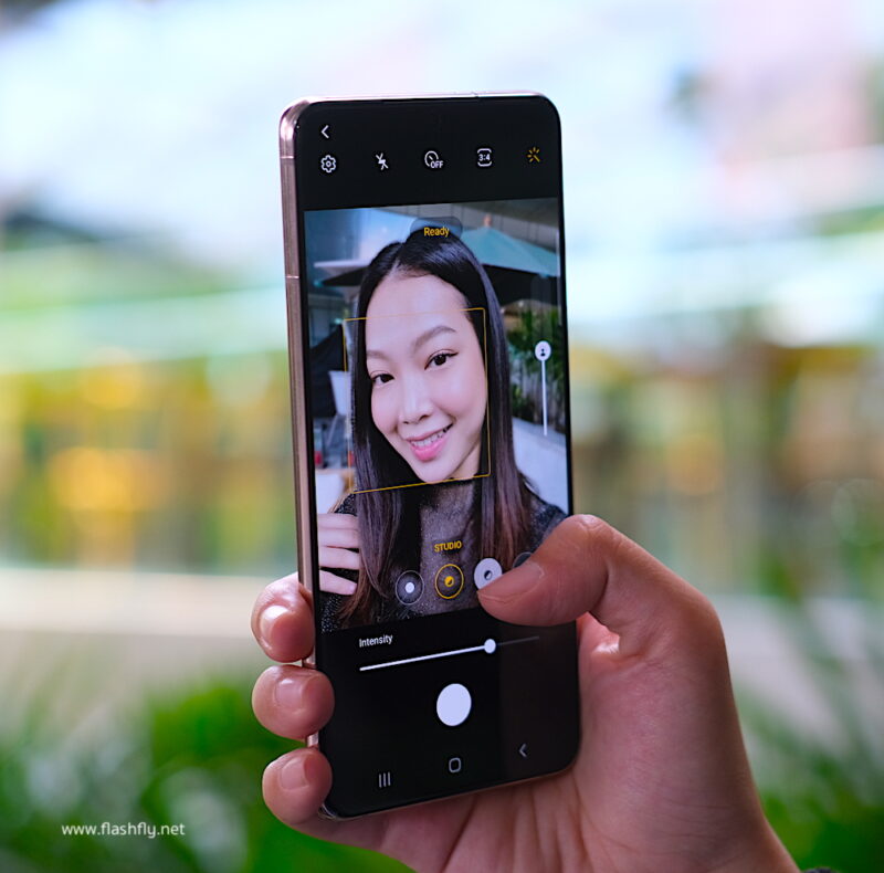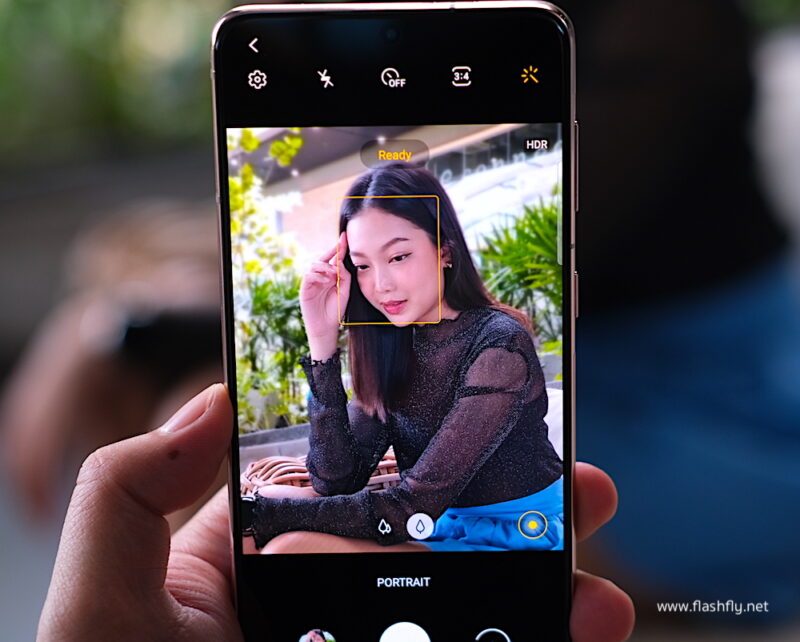 การถ่ายภาพบุคคล หรือ หน้าชัดหลังละลายของ Galaxy S21+ 5G สามารถปรับความเบลอของฉากหลังได้ 7 ระดับ ปรับโทนสีผิวได้ 8 ระดับ และมีฟิลเตอร์ Blur, Studio, High‑Key Mono, Low-Key Mono, Backdrop และ Color Point ทำให้ได้ภาพถ่ายบุคคลที่เหมือนถ่ายจากสตูดิโอ