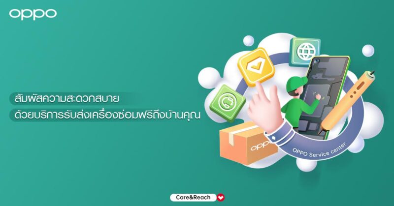 บริการรับส่งเครื่องซ่อม ถือเป็นบริการที่สะท้อนถึงความมุ่งมั่นในการเข้าถึงปัญหาของผู้ใช้ และการพัฒนาบริการหลักของอุตสากรรม พร้อมลดความยุ่งยากให้แก่ผู้ใช้อย่างต่อเนื่อง โดย OPPO มุ่งมั่นที่จะยกระดับระบบบริการและมอบประสบการ์ที่ดีที่สุดให้กับผู้ใช้ สอดคล้องกับความเชื่อที่ว่า “Technology for Mankind, Kindness for the World”