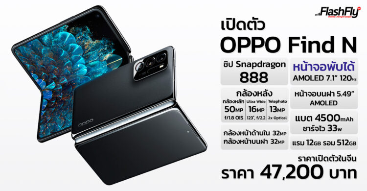 OPPO บริษัทเทคโนโลยีอัจฉริยะระดับโลก ประกาศเปิดตัว OPPO Find N สมาร์ทโฟนแฟล็กชิพจอพับรุ่นแรก (Foldable flagship smartphone) ในวันที่สองของการจัดแสดงนวัตกรรม OPPO INNO DAY 2021 ซึ่งเป็นสมาร์ทโฟนที่เกิดจากการวิจัยและพัฒนาเป็นระยะเวลานานถึง 4 ปี และสร้างโปรโตไทป์แล้วถึง 6 รุ่นด้วยกัน ทำให้ OPPO Find N สามารถมอบอีกขั้นของรูปแบบสมาร์ทโฟนแบบจอพับ พร้อมมอบประสบการณ์ใหม่ๆ ให้แก่ผู้ใช้งาน ทั้งผู้ใช้งานที่เคยและไม่เคยใช้สมาร์ทโฟนแบบจอพับได้