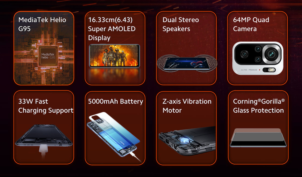Redmi Note 11 SE มาพร้อมจอแสดงผล AMOLED ความละเอียด 2400 x 1080 พิกเซล ขนาด 6.43 นิ้ว ใช้ชิปประมวลผล MediaTek Helio G95 ความจำ RAM แบบ LPDDR4X สูงสุด 8GB จับคู่กับ ROM แบบ UFS 2.2 สูงสุด 128GB แบตเตอรี่ 5000mAh รองรับชาร์จเร็ว 33W ทำงานบนพื้นฐาน Android 11 ครอบทับด้วย MIUI 12.5