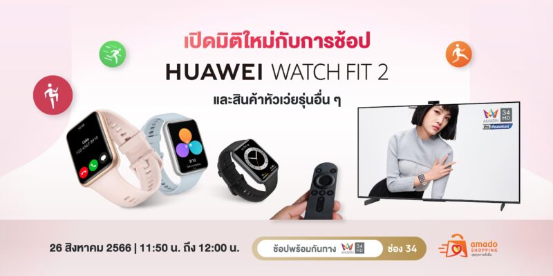 นับเป็นครั้งแรกกับการเปิดประสบการณ์การใหม่กับการช้อปแก็ดเจ็ตไอทีของหัวเว่ยผ่านช่องทางขายทีวีโฮมช้อปปิ้งโดย Amado Shopping ยกผลิตภัณฑ์สุดฮิตจากหัวเว่ยที่ได้รับการตอบรับล้นหลามทั้งด้านคุณภาพและราคาอย่าง HUAWEI WATCH FIT 2 และ HUAWEI WATCH D พร้อมจัดโปรโมชันพิเศษเมื่อสั่งซื้อสินค้าก่อนใคร