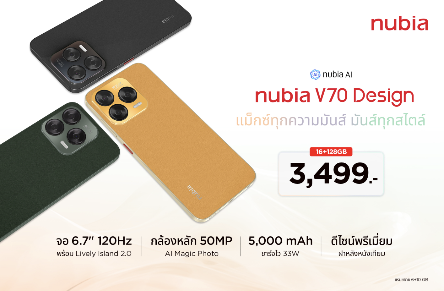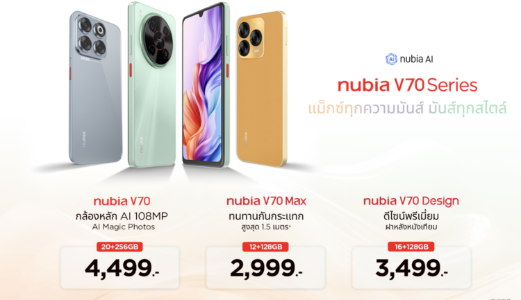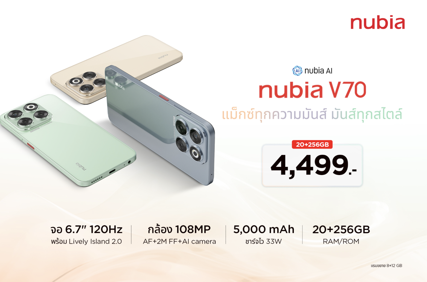 nubia V70 Series พร้อมวางจำหน่ายแล้ววันนี้ที่ตัวแทนจำหน่ายทั่วประเทศและช่องทางออนไลน์ทุกแพลตฟอร์ม ช้อปเลย !